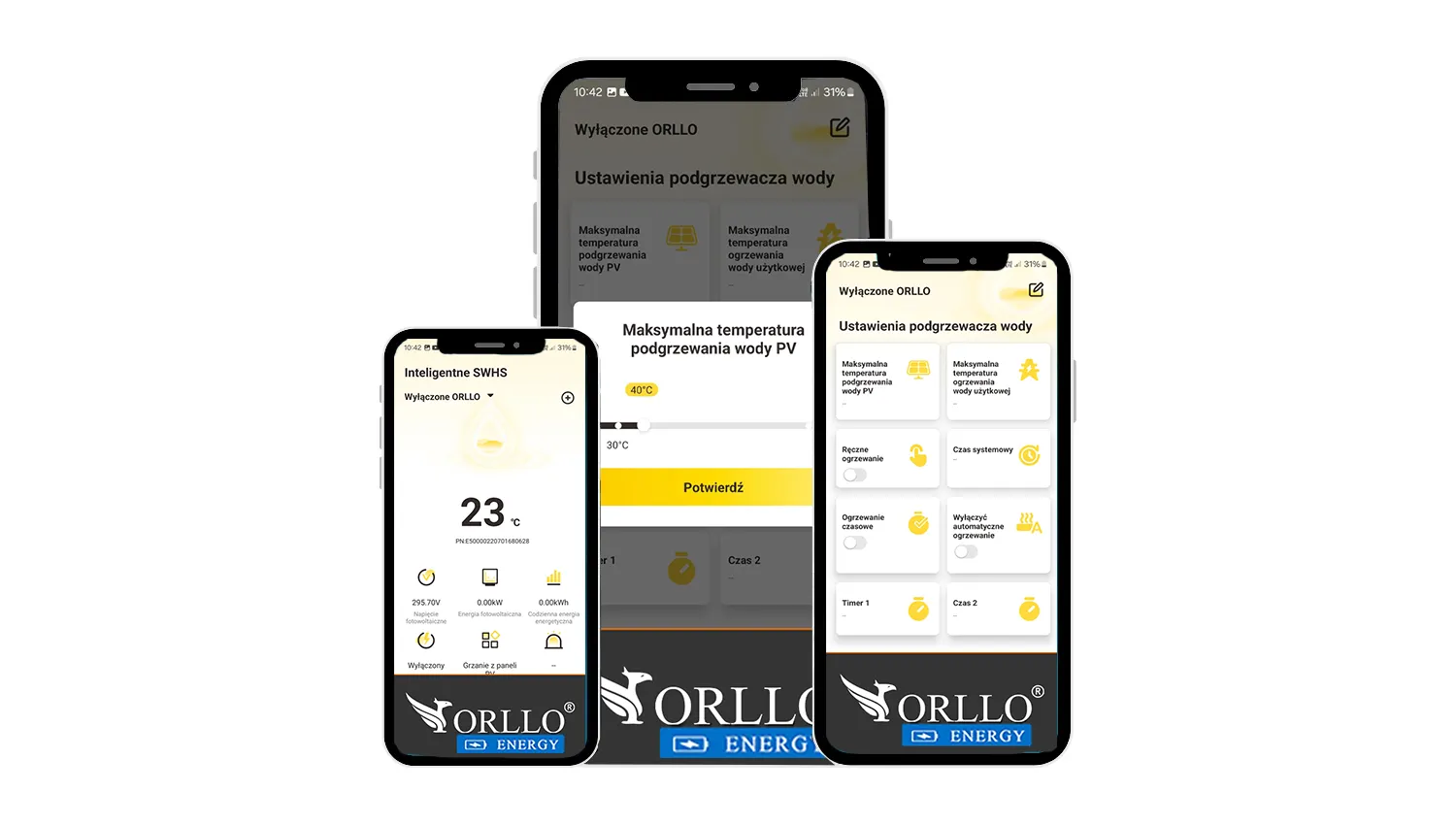 Aplikacja ORLLO do przetwornic solarnych to prosta aplikacja do zdalnego zarzadzania. Pozwala na sprawdzanie aktualnej temperatury wody w podgrzewanym urządzeniu, jak również zmianęustawień. Aplikację możemy zainstalować na urządzeniu z systemem Android i IOS