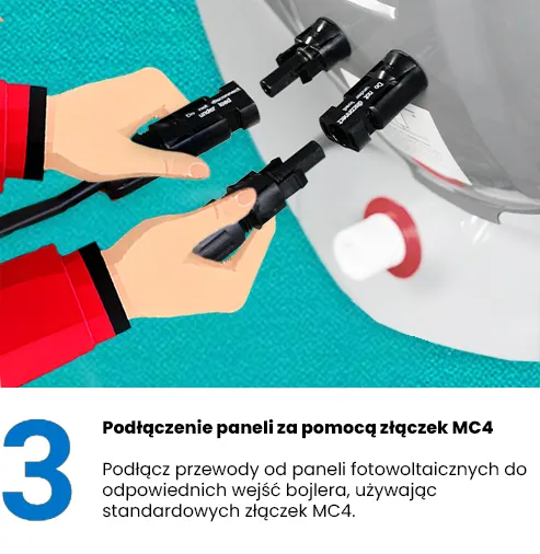 - Wysoka moc grzewcza: 2.2 kW (DC) + 2.4 kW (AC) - Bojler wyposażony jest w cztery grzałki (dwie zasilane prądem stałym z paneli PV i dwie z sieci 230 V), co umożliwia szybkie nagrzewanie wody nawet w dużym gospodarstwie domowym.