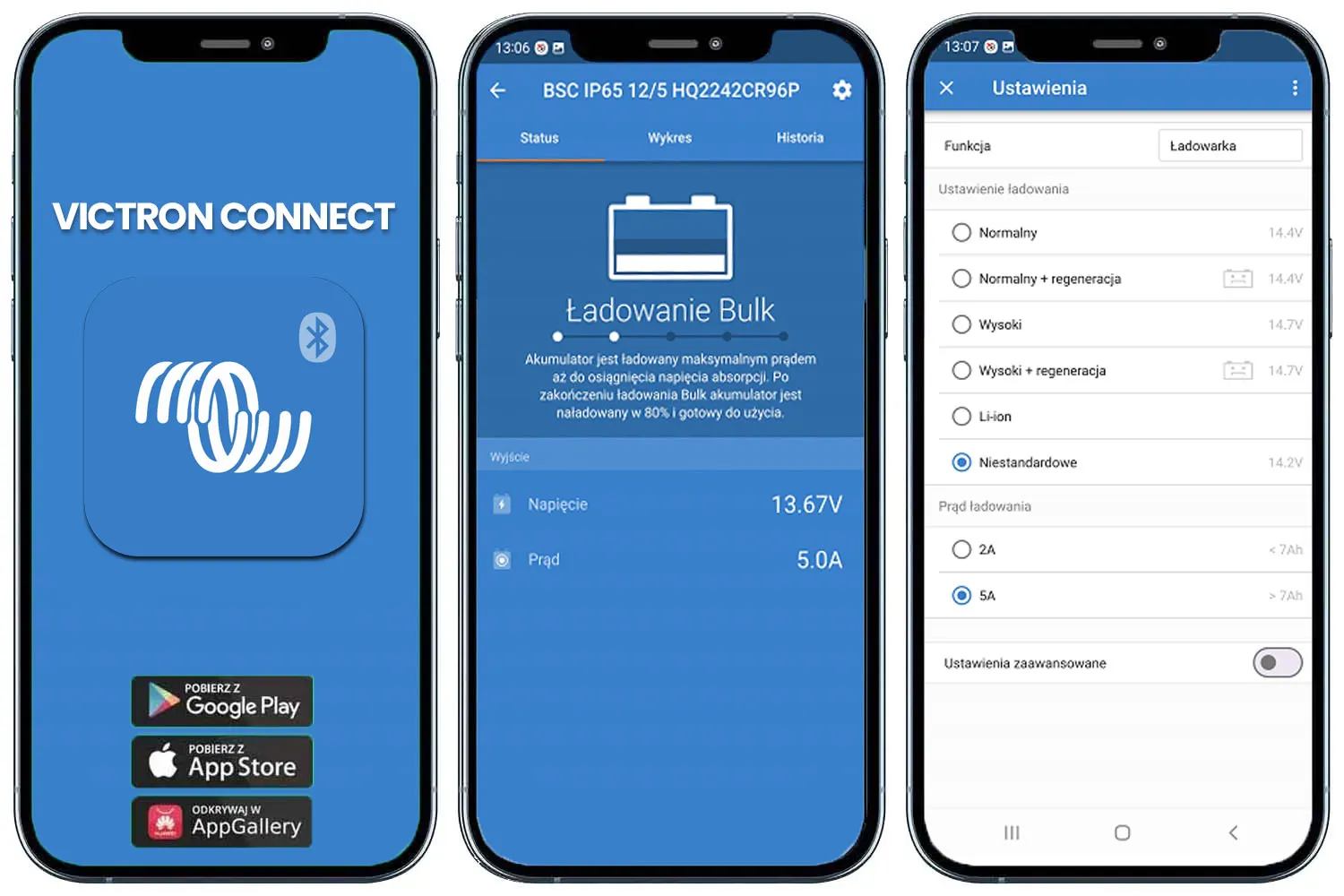 - Minimalne napięcie akumulatora: 0 V (zaczyna ładowanie)