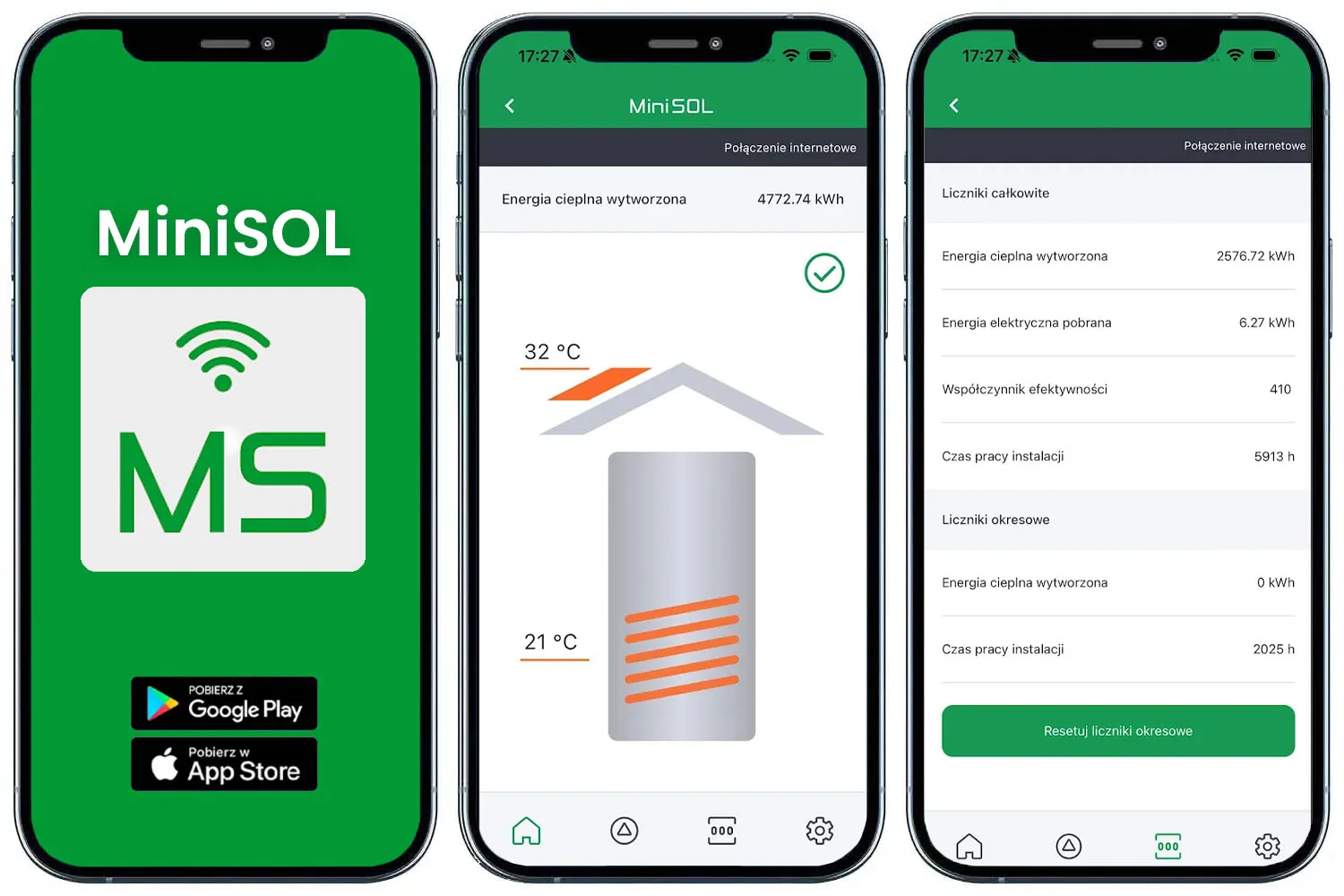 - Sterownik: MiniSOL (zintegrowany, Plug&Play, Wi-Fi)