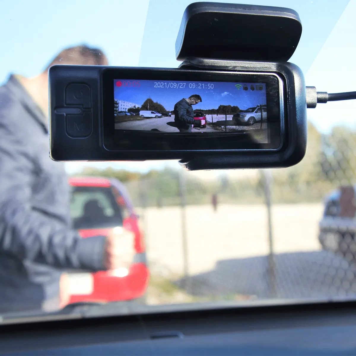 • Jasna Optyka (F/2.0): Zarówno przednia, jak i tylna kamera, wyposażone w jasne obiektywy o przysłonie F/2.0, gwarantują wysoką jakość nagrań nawet w trudnych warunkach oświetleniowych i pogodowych, takich jak nocne przejazdy, jazda w deszczu itp.