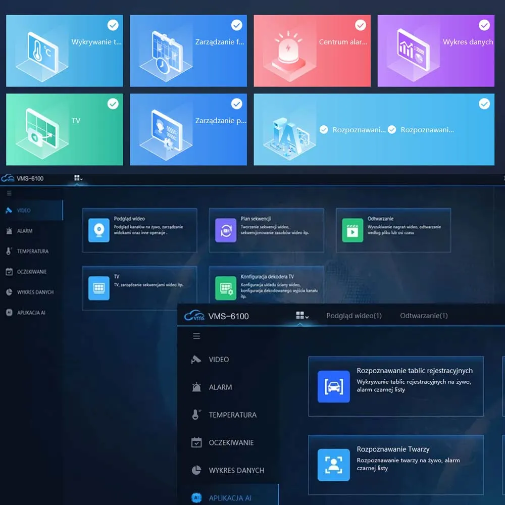 - Inteligentna analiza obrazu (AI IVS) - obsługa kamer z AI