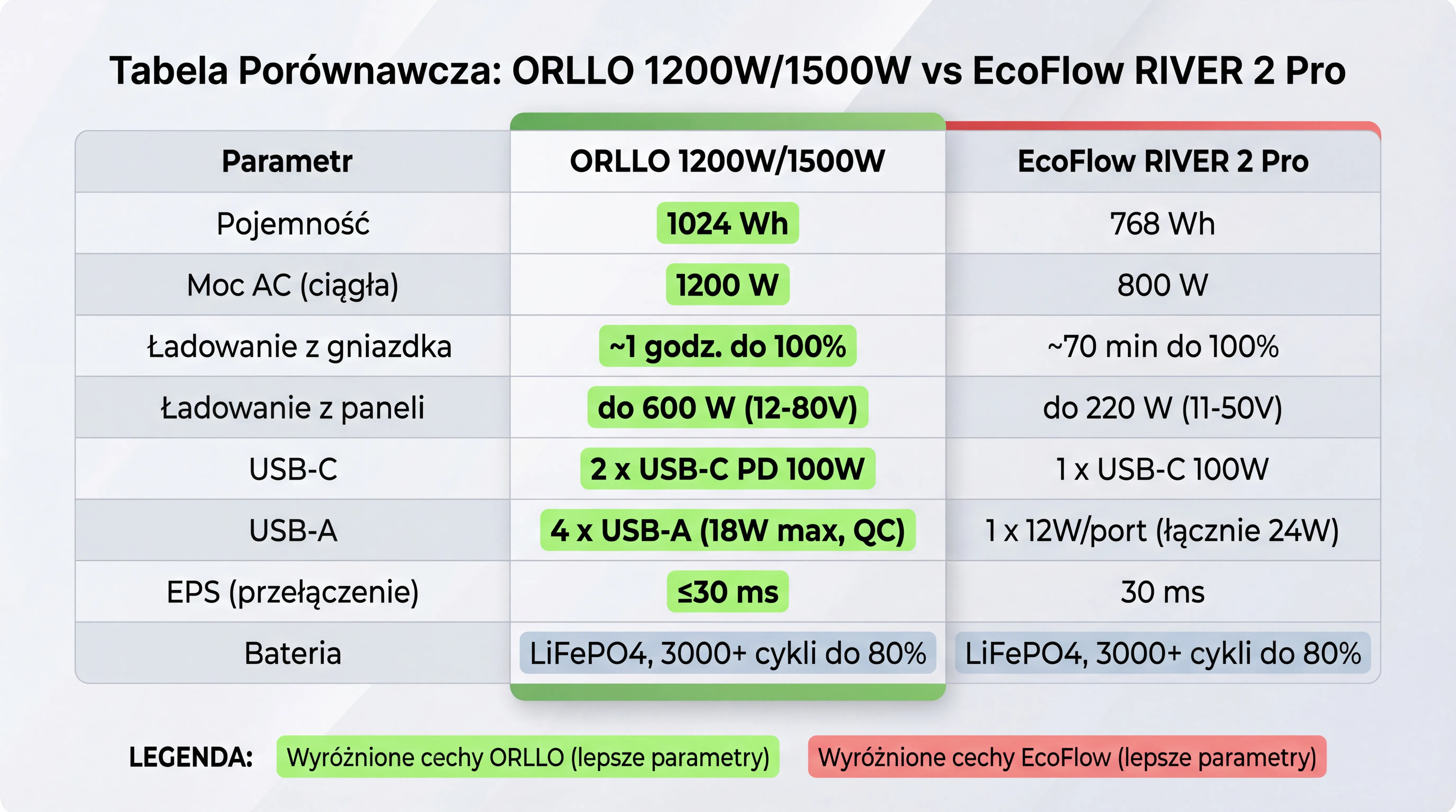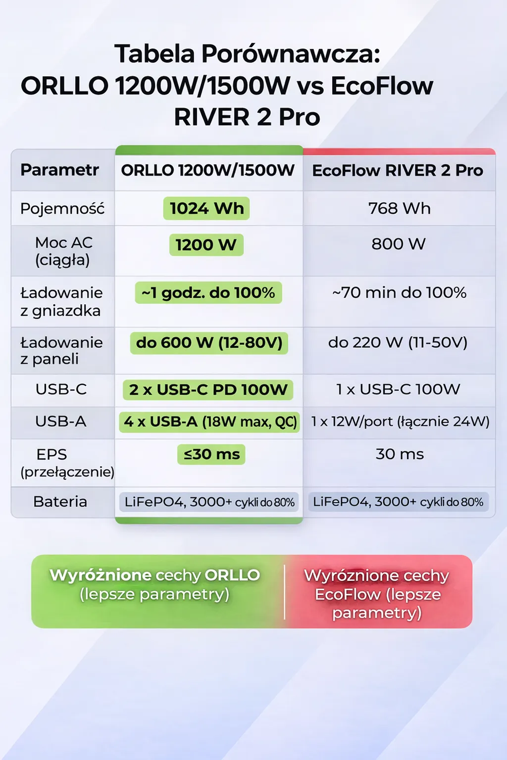 ORLLO 1200W — większa pojemność, wyższa moc, polska dystrybucja i niższa cena niż EcoFlow River 2 Pro.