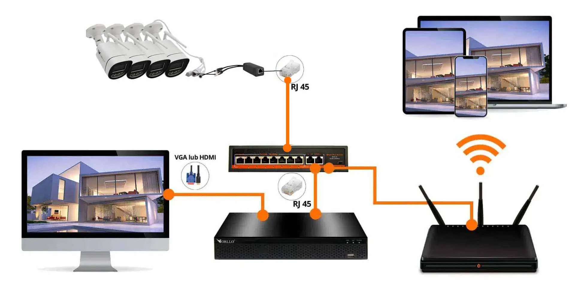 - Rejestrator kamer WiFi (po podłączeniu kamer do routera WiFi)